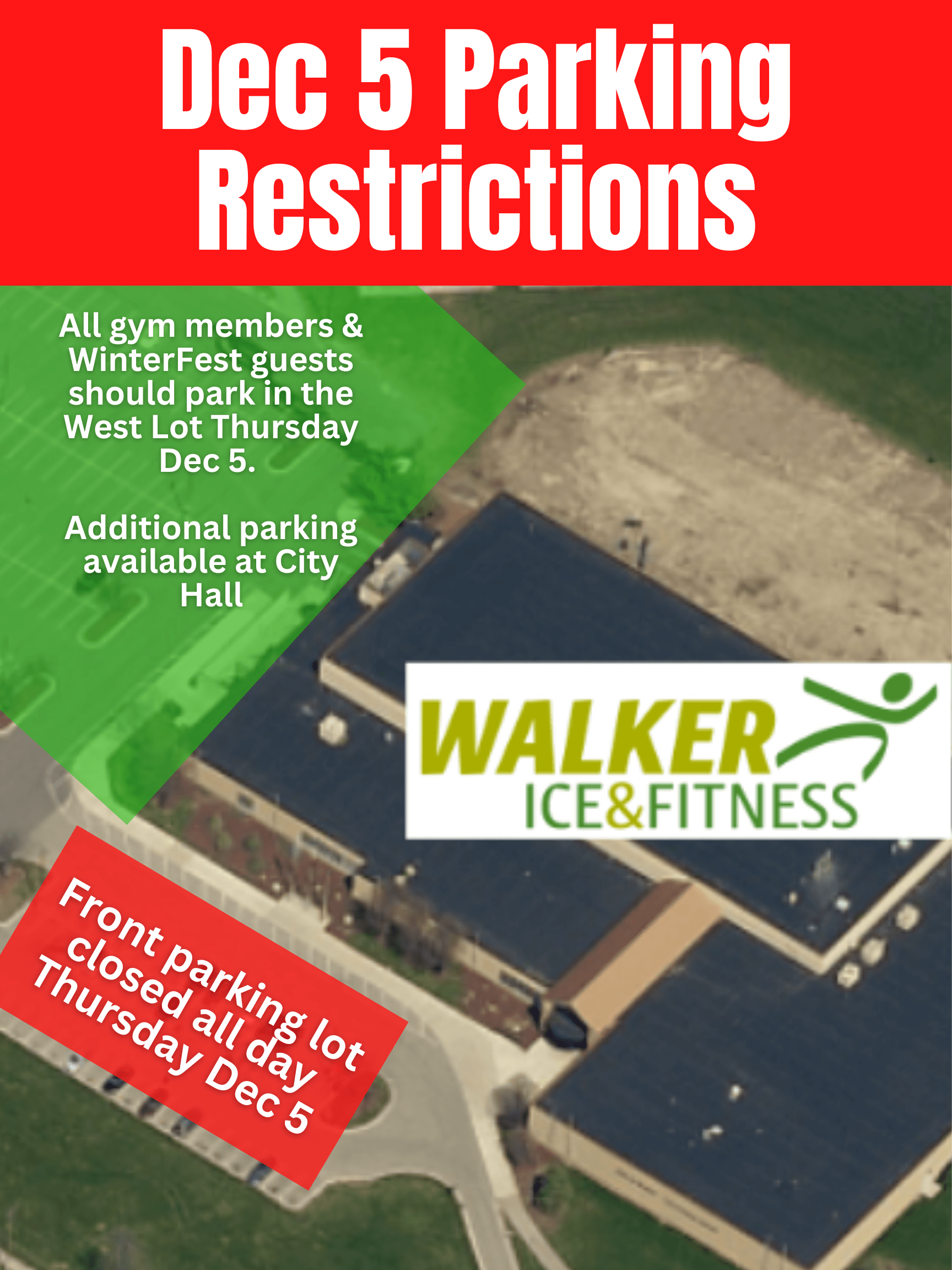 The City of Walker's WinterFest is Dec 5 at 5:30pm. We will be setting up this event all day on Dec 5. Our Front Parking Lot will be closed ALL DAY. We ask all members and guests to park in our West Parking Lot. Overflow parking will be available at City Hall: